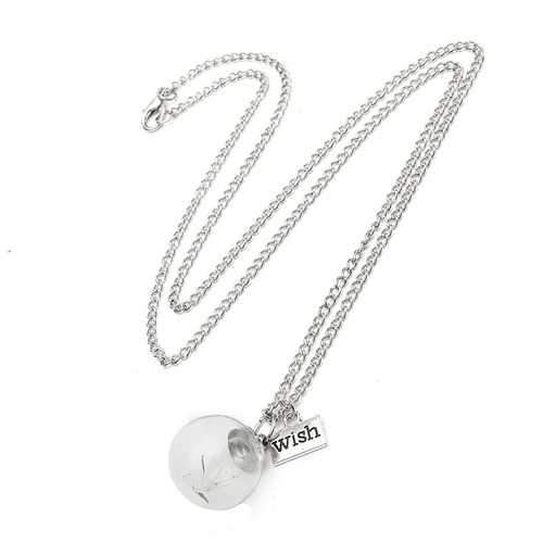 Vintage Alloy Glass Bottle Dandelion Letter Wish Necklace
