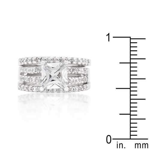 Channel your inner Princess with this beautiful Princess Cut Triple Bridal Ring fashioned in a simple stacked design and glimmering light catching stones. Our genuine rhodium finish is achieved using an electroplating process that coats the item with heavy layers of rhodium a close cousin to platinum which gives our jewelry a platinum luster.