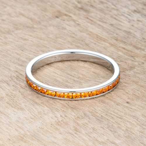 Small orange stones come full circle in this simple and delicate eternity bandBase Metal: Stainless SteelStyle: , Setting Type: ChannelMaterials: , Stone Cut: RoundPlating Color: SilvertoneRing Band Width: 2 MmStone Size: 1.5 Mm