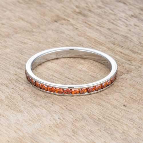 Small dark champagne stones come full circle in this simple and delicate eternity bandBase Metal: Stainless SteelStyle: , Setting Type: ChannelMaterials: , Stone Cut: RoundPlating Color: SilvertoneRing Band Width: 2 MmStone Size: 1.5 Mm