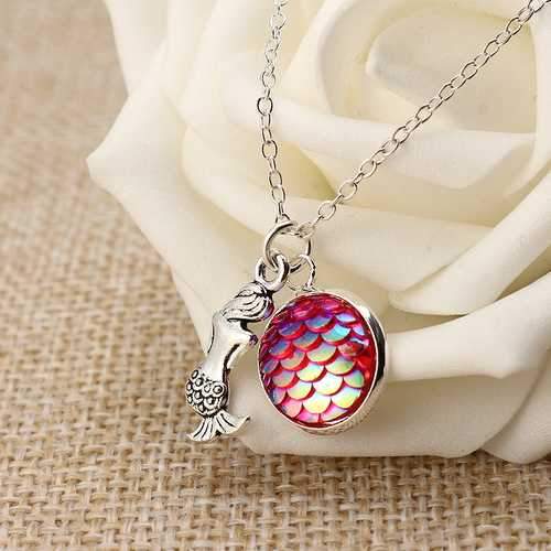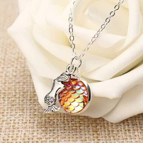 Trendy Time Gemstone Colorful Mermaid Scale Resin Pendant Delicate Silver Necklaces for Girl Women
