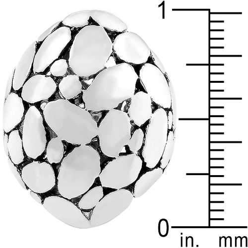 rhodium plated Cobblestone Ring features cobblestone design with black enamel ink. Genuine Rhodium Plating is achieved using an electroplating process that coats the item with heavy layers of rhodium a close cousin to platinum which gives our jewelry a platinum luster.