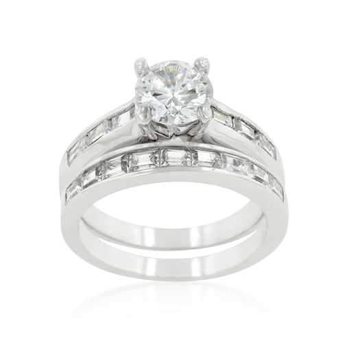 The rhodium plated Stackable Ring Set features a set of baguette accented bands with a wondrous clear cubic zirconia center. Our genuine rhodium finish is achieved using an electroplating process that coats the item with heavy layers of rhodium a close cousin to platinum which gives our jewelry a platinum...