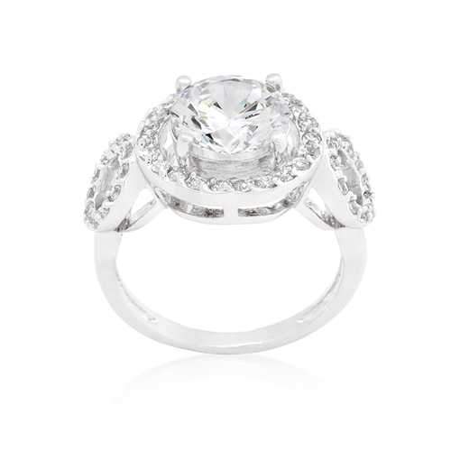 Fashioned in a circular trio of sparkling stones and a beautiful round center stone this Round Cut Trio ring is a beautiful addition to any woman's jewelry box. Our genuine rhodium finish is achieved using an electroplating process that coats the item with heavy layers of rhodium a close cousin to platinum which gives our jewelry a platinum luster.