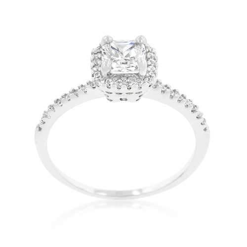 Feminine and elegant. Simple and sophisticated. Fashioned in an elegant cubic zirconia this elegant halo style would be adored by any woman. Our genuine rhodium finish is achieved using an electroplating process that coats the item with heavy layers of rhodium a close cousin to platinum which gives our jewelry a platinum luster.