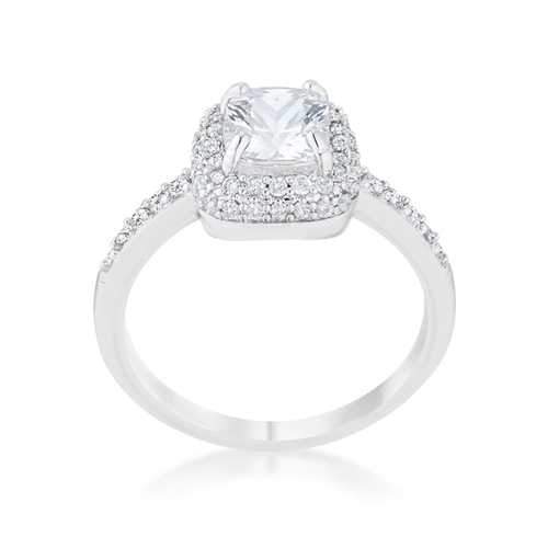 Clear stones surround a classic cushion cut stone fit for a vintage-inspired look. While smaller stones lightly decorate its classically simple setting.Base Metal: Lead Free Alloy (brass)Style: , Materials: , Stone Cut: CushionPlating Color: RhodiumRing Band Width: 2mmStone Size: 1.25 Mm