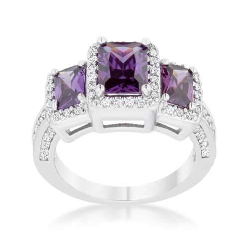 Rita 2.3ct Amethyst CZ Rhodium Classic Trio Ring