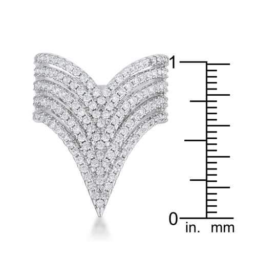 A vintage-inspired ring is encrusted with beautiful clear CZs in an elegant v-shape design. The perfect piece to top off dinner ensembles.Base Metal: Lead Free Alloy (brass)Style: , Setting Type: PaveMaterials: , Stone Cut: RoundColor: , Plating Color: RhodiumRing Band Width: 5.25 MmStone Size: 1.25 Mm