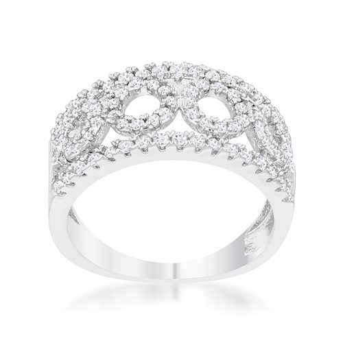 Small clear stones accent circle designs in this glamorous contemporary band ring.Base Metal: Lead Free Alloy (brass)Style: , Setting Type: PaveMaterials: , Stone Cut: RoundColor: , Plating Color: RhodiumRing Band Width: 2mmStone Size: 1.15 Mm